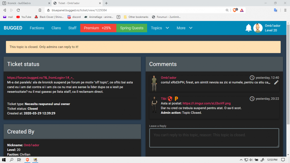 https://bluepanel.bugged.ro/complaint/view/1230669 chiar ca degeaba, nicu e paralel cu adminul, probabil e de pe beta, contul care mi-a facut reclamatie e banat de 2 zile, dar el e on azi si il injur, doamne @Shad0w ce admini ai.