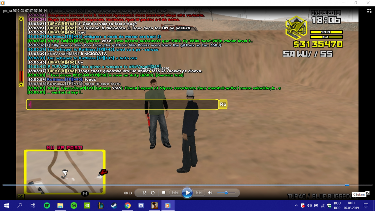 S I N K O D E Posted March 6, 2019 Posted March 6, 2019 1 hour ago, Ph3N0meN089 said: Nick-ul tău: Ph3NoM3n89 Nick-ul celui care ți-a cerut testul: SinKode Dovezi cu testul (ss / video): Tipul licenței: Gun Alte precizări: - Test aprobat! Quote